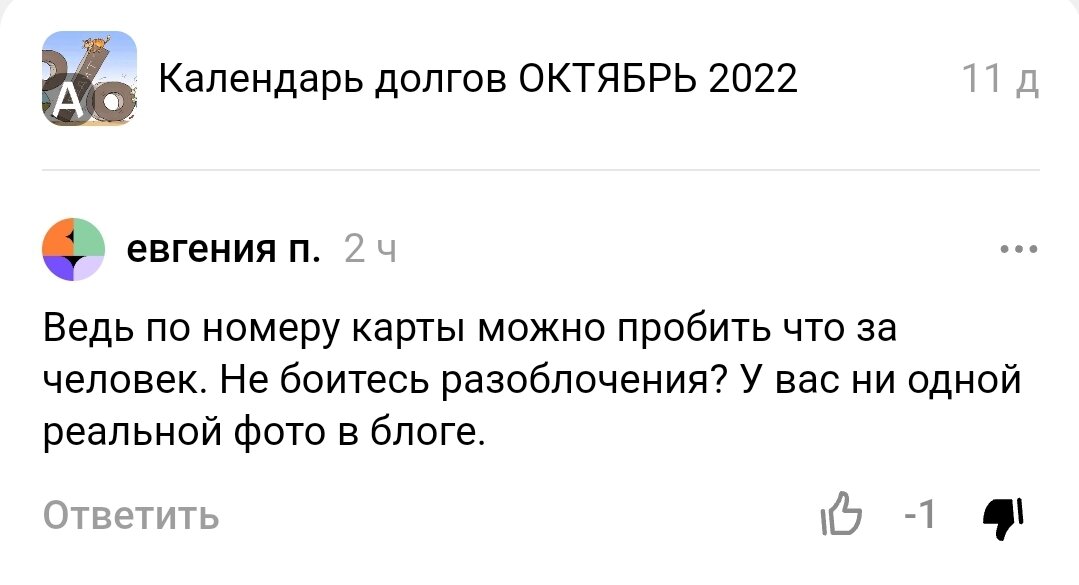 Уважаемая, Евгения! Статью Вам посвящаю, чтоб вы точно увидели! Что хочу сказать, пробивайте! Копируйте и пробивайте! Можете скопировать и идти в полицию! Даю здесь официальное разрешение! Можете и это сообщение скопировать, пробивать и писать! Если и придут, я потрачу максимум 15 мин. своего времени, показав кредитные договора и договора с ломбардами. Они у меня аккуратно подшиты в красную папку! Подписчики переводили мне на дебетовую карту Сбербанка, я об этом писала! На эти деньги с этой карты я покупала КОРМ ДЛЯ КОШКИ И ПРОДУКТЫ, а также оплатила долг Управляющей Компании. Сделать выписку, это меньше минуты! Ну а что вам...медаль наверно, не знаю. У вас времени полно, у меня мало. Мой ребенок сытый и чистый спит, а мне нужно садится за подработку! Надеюсь на этом всё! Нет! А еще... На сообщения "Покажи фото" "покажи квартиру" "Нет фото, нет ребенка" и т.д. Показывайте на своих страницах свои неудачи, неприятности, ссоры с начальством, у меня сейчас просто фантазии нет. Что то я