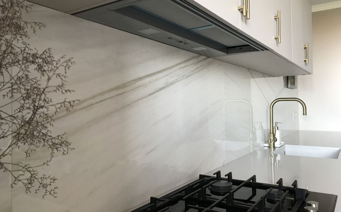 Если хочется чего-нибудь эдакого и практичного, тогда это идеальный способ. На каленое стекло, с задней стороны, наноситься печать с любым изображением, которое вы хотите. Крепиться стекло двумя способами: на клей или на металлические крепления.