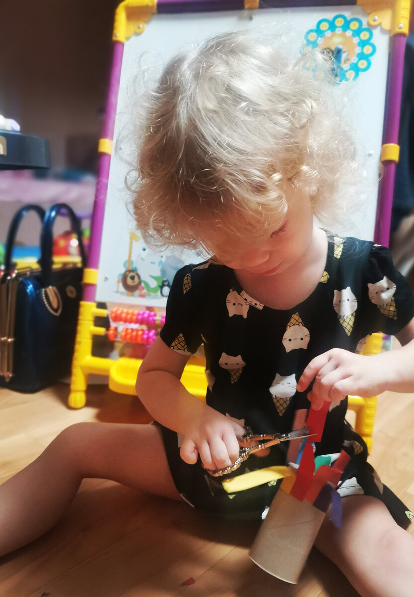 Мелкая моторика играет большую роль в развитии ребёнка и навык резать бумагу ножницами ✂️ здорово помогает в ее развитии. Прежде чем ребёнок хорошо освоит навык резания бумаги пройдёт немало времени и тут важно помочь ему не утратить интерес. Ведь домик с кривой крышей или неровный круг расстроит ребёнка и может отбить желание действовать дальше. На помощь всегда приходят различные игры-задания и одно из них мы с Софой сделали давно - это наша девочка с длинными волосами 😂. Можно конечно сделать линии, зигзаги, круг, квадрат, волны, на что хватит воображениея но сначала должно быть легко, усложнять не надо. Заготовки делайте вместе с ребёнком, чтобы он видел, что ему предстоит делать. Как сделайте с ребёнком заготовки приступайте. Пусть сначала ребёнок выполнит задание в любом удобном для него темпе. Главное научиться чувствовать ножницы в руке. Как только вы поймёте, что ребёнок научился без усилия резать бумагу, можно подключить тяжелые упражнение. Например: чередуя прямые линии с