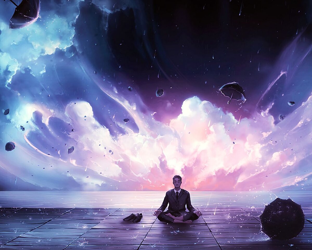 - Глаза. Мягко прикрыты. Не зажмурены! Глазные яблоки, веки, брови и все мышцы лица расслаблены. Направление взгляда - сквозь веки в пол на расстоянии 1,5-2 метра.