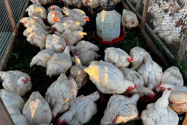 На заключительном этапе откорма скармливается финишная комбинированная кормовая смесь. Если правильно подойти к кормлению птицы, она убойной кондиции достигает в 42-45-дневном возрасте. Предубойная живая масса – примерно 2,4 кг. Ежедневный расход корма – 169 г. Кратность кормлений – 2 раза.
