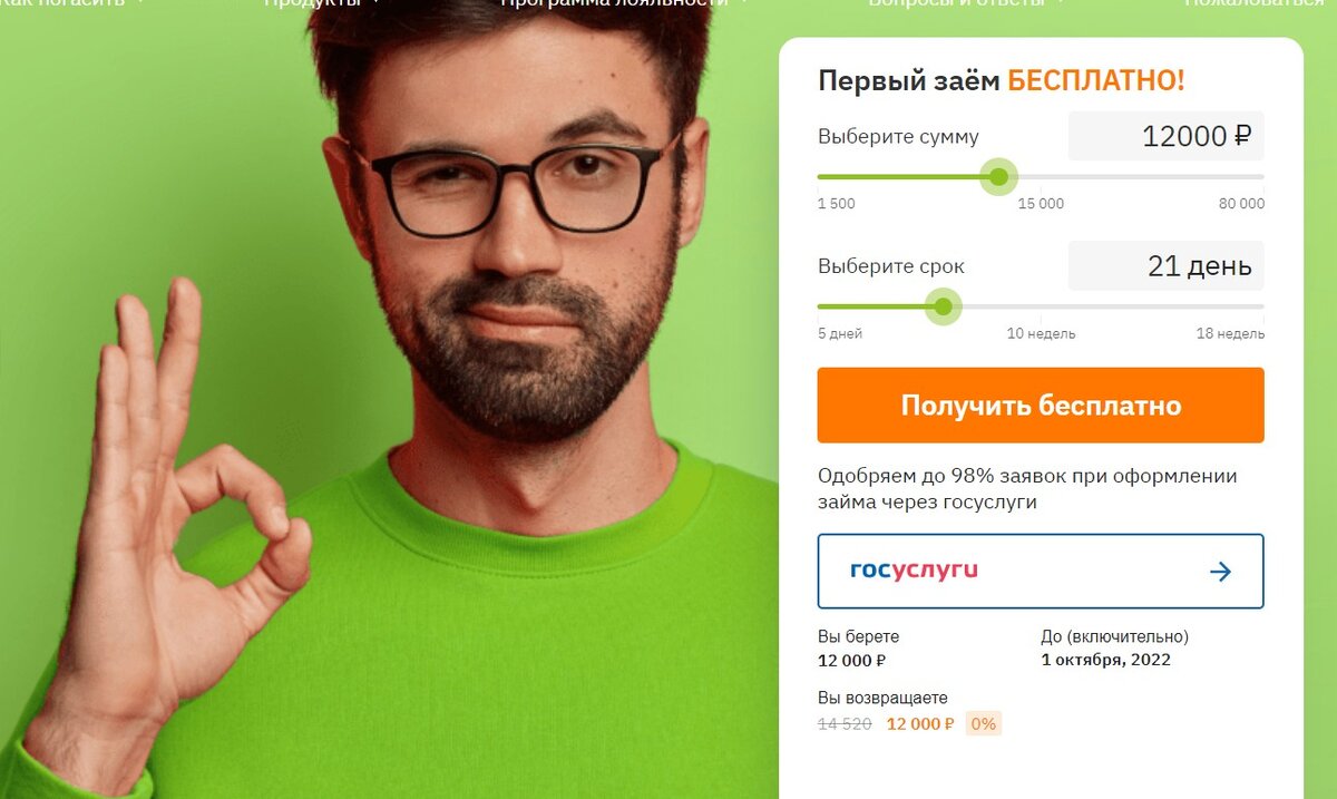Получи первый онлайн заём под 0% До 15 000 рублей, до 21 дня — без процентов!