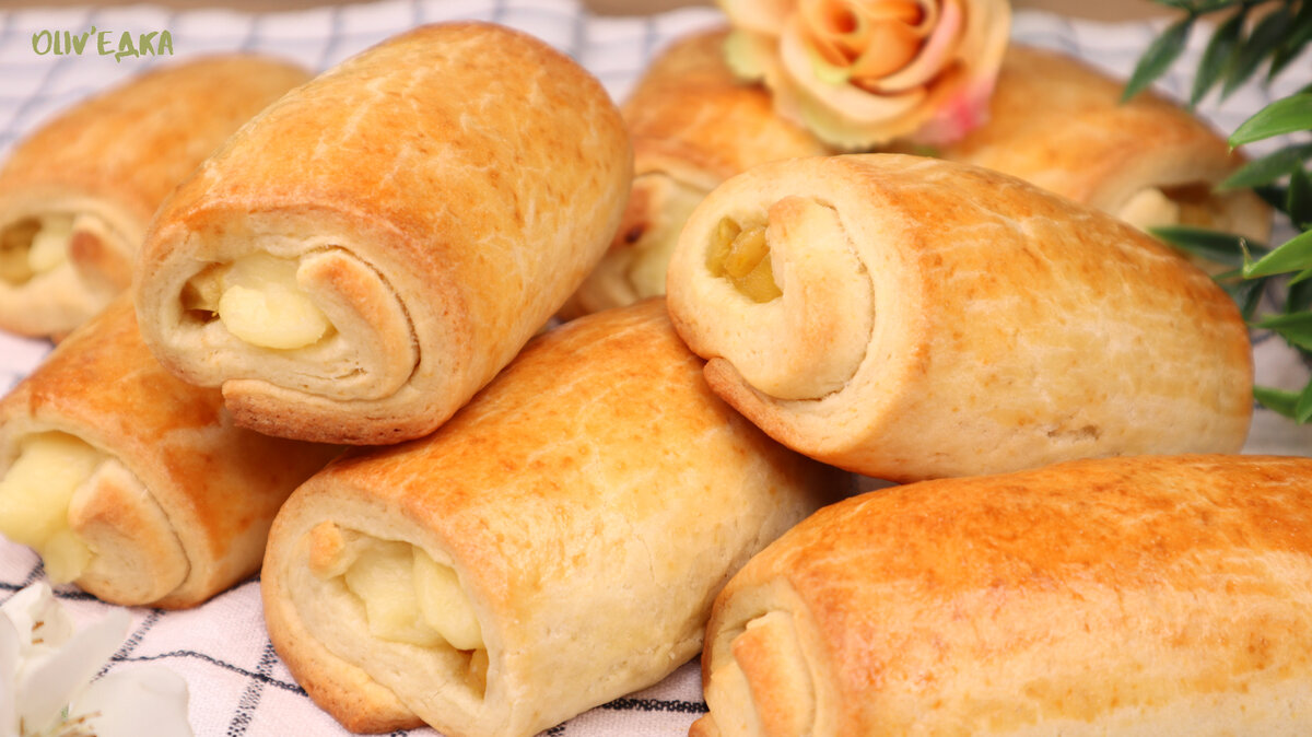 Мягкие мини-рулетики без дрожжей с двойной начинкой: крем и яблоки. Обычно все продукты всегда есть на кухне