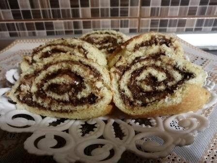 Всем доброго времени суток! Делюсь рецептом очень быстрого в приготовлении бисквитного рулета всего из трех ингредиентов + начинка. Ничего отделять и отдельно взбивать не надо. 9-10 минут на замес теста и 15 минут на выпечку. Нам понадобится: Яйца - 4 штуки Мука - 100 грамм Сахар - 100 грамм. Все . Ванилин - пакетик ( по желанию) Любая сладкая начинка ( крем, варенье, повидло,джем) . У меня шоколадно - молочная паста. Приступим. 1. Разогреть духовку до 180 градусов. 2. В глубокой миске начинаем взбивать 4 яйца. В процессе взбивания постепенно добавляем 100 грамм сахара. Взбивать 7-8 минут. За это время масса значительно увеличиться. 3. Во взбитую массу в три приема вводим муку, аккуратно перемешивая лопаткой сверху вниз. Можно добавить ванилин ( по желанию). 4. Противень застелить пергаментной бумагой. Вылить тесто и разровнять его по всей поверхности. Выпекать в разогретой до 180 градусов духовке 15-20 минут до румяности. Следите, чтобы не пересушить бисквит. 5. На столе расстила