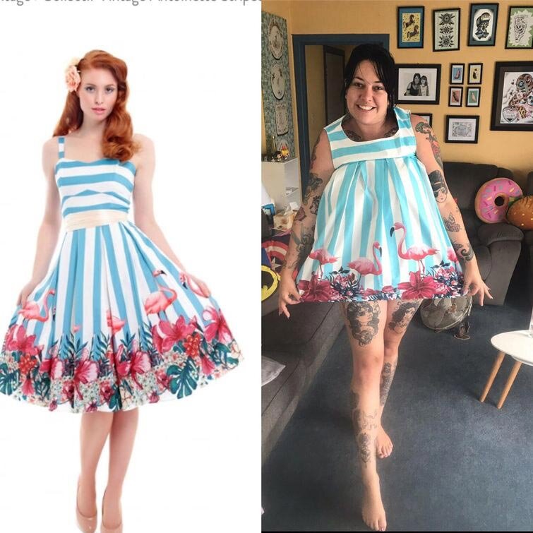 Как часто мы встречаем в интернете подборку фотографий, где людям не повезло с размером одежды и после этого они выглядят максимально нелепо? Я уверен, что на просторах сети таких "счастливчиков" вы могли наблюдать достаточно регулярно. В данной статье мне бы хотелось показать вам эти самые неудачные покупки и параллельно с этим, поднять настроение в такие непростые времена. Поехали! Открывает наш топ гармоничное платье с розовыми фламинго и экзотическими цветами. Я предполагаю, что данный товар идеально бы дополнил ваш летний гардероб. Интересно, каково было разочарование девушки, когда она получила вещь с размером, максимум, для пятилетнего ребёнка. Часто бывает так, что мужчины переоценивают своё "спортивное" телосложение и ошибаются с размером. Как вы уже могли заметить, данные костюмы явно отличаются, не так ли? Не думаю, что парень справа рад этой покупке. Свадьба - это событие, которое является одним из самых важных в жизни молодых. И для такого торжества нужно подобрать соответ