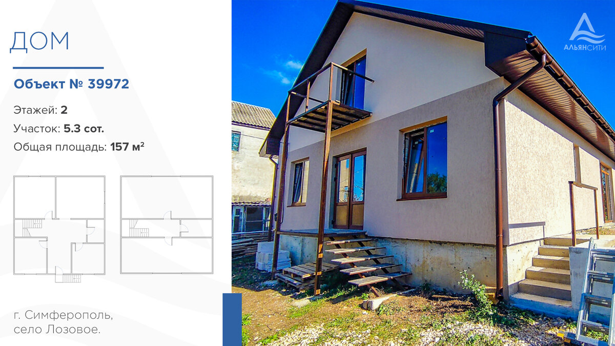 Объект № 39972 В продаже новый, просторный дом в городе Симферополь, село Лозовое. Дом общей площадью 157 м2. Площадь участка 5,3 сотки. Количество этажей: 2 1 этаж: спальные комнаты 18,1 м2, 12,2 м2, 10,2 м2, кухня 21,9 м2, санузел 4,2 м2, коридор 18 м2. Мансардный этаж: спальные комнаты 25,9 м2 и 30,8 м2, коридор 5,1 м2, кладовая 3,9 м2. - Дом под чистовую отделку. - Красивый вид из окон в обе стороны дома. - Есть место под авто, огород или зоны отдыха, прекрасный, чистый воздух. - Соседи постоянно проживают. - Просыпанные подъездные пути. Удобно добраться на автомобиле. - Локация: до центра Симферополя 8 км, до моря 30 минут езды. 3 минуты до Ялтинской трассы. - Коммуникации: свет 3 фазы, вода скважина, газ по соседней улице, электроотопление. Год постройки дома: 2022 Количество собственников: один Подробнее: https://centrestate.ru/prodazha-domov-v-gorodskom-okruge-simferopol/ Стоимость: 5 000 000 руб. Актуальна на момент публикации. Мы находим уникальные варианты и соверш