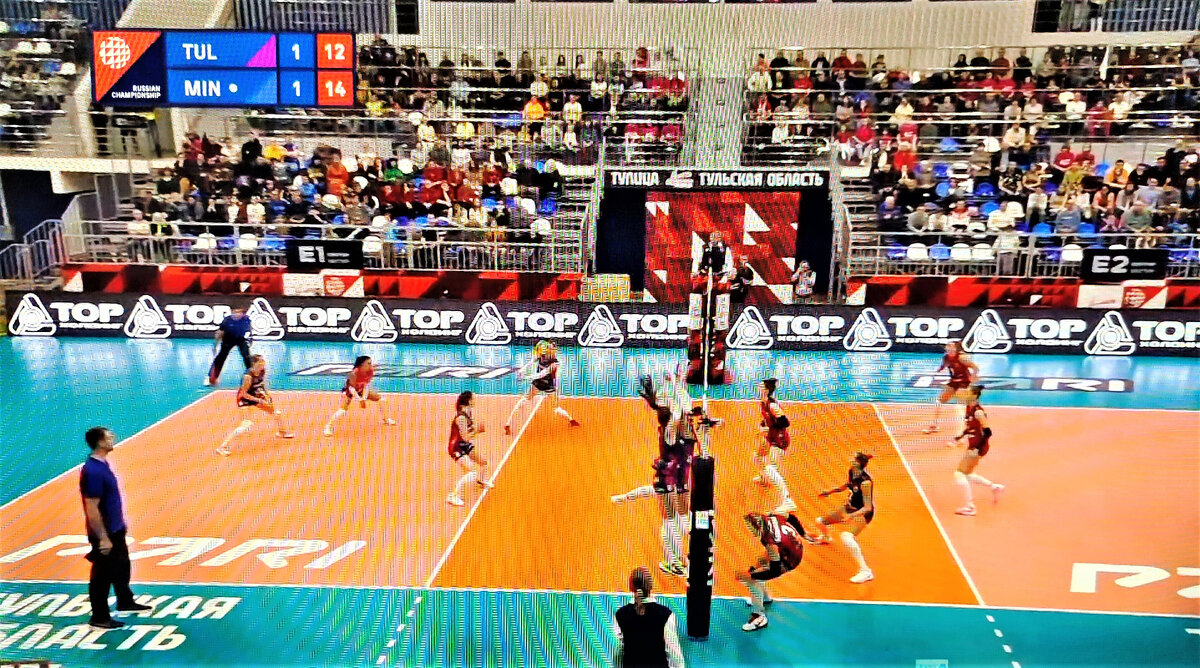 Этот матч в Туле команды начинали с разным настроением и на разных позициях в турнирной таблице. Тулица выиграла обе стартовые встречи начавшегося чемпионата и не прочь была продолжить свою победную серию. Минчанка оба своих матча проиграла. Соперники обеих команд в стартовых турах несколько отличались в классе, но все же старт у Минчанки явно не задался. Тулица начала встречу активно и стала сразу создавать очковый задел (4-1, 6-3). Минчанка какое-то время раскачивалась, но скоро тоже взялась за дело. Игра выровнялась и серьезного очкового отрыва Тулице создать не удалось. А во второй половине партии неплохую серию подач выполнила центральная блокирующая Минчанки Елена Лозюк. В этот период команда хорошо отработала во всех компонентах игры , включая защиту, при этом даже не взирая на отсутствие на площадке либеро в силу расстановки. И уже очковый перевес сложился в пользу Минчанки. Порадовало, что Минчанка не остановилась и уверенно довела партию до победы 25-16. Во второй п