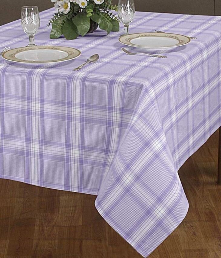 1. Возьмите отрез ткани с ровным полотняным переплетением нити. Как правило, для стола длиной 180 см достаточно длины ткани 270 см при ширине 140 см. Если кромка слишком плотная и стягивает ткань, срежьте ее с обоих краев. Подровняйте поперечные срезы, чтобы они шли точно по линии нити. Подогните все срезы на 0.7 см на изнаночную сторону и закрепите машинной строчкой. Затем подогните края по всему периметру еще на 2.5 см и приутюжьте. В углах загните припуски по диагонали и срежьте излишки ткани, оставив 0.7 см. 2. Отогните подгибку в углах, сметайте, а затем сшейте потайным швом. Пристрочите подгибку на расстоянии 3 мм от края. Можно проложить декоративную строчку. 3. Край скатерти можно украсить простой вышивкой или украсить бахромой. Чтобы получился комплект, сделайте к скатерти салфетки из той же ткани. Для 6 квадратных салфеток потребуется 95 см ткани при ширине 140 см.