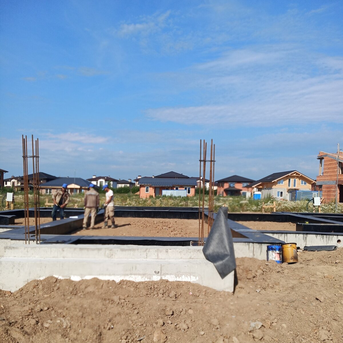 В охраняемом коттеджном поселке Павлово House продолжается строительство двухэтажного коттеджа с гаражом по проекту архитектурного бюро Архрешение. Общая площадь постройки составит 352,6 кв.м. Еще в июле мы рассказывали об устройстве ростверка, а к началу октября рабочие успели возвести коробку дома и приступили к оштукатуриванию фасада. Что было сделано за 2,5 месяца: — Завершена кладка несущих стен 1-го и 2-го этажа из крупноформатных керамических блоков Гжельского кирпичного завода. Это один из самых теплых стеновых материалов, который позволяет строить дома быстрее за счет крупного формата. — Кладка перегородок 1-го и 2-го этажа из красного пустотелого кирпича на Универсальную смесь @perfekta. — Монтаж плит перекрытия 1-го и 2-го этажа с использованием отсечной гидроизоляции @technonicol. — Устройство монолитных конструкций — армирование и бетонирование колонн раствором В25 завода Инком-Бетон. — Монтаж стропильной системы из хвойного пиломатериала, обработанного огнебиозащитным сос