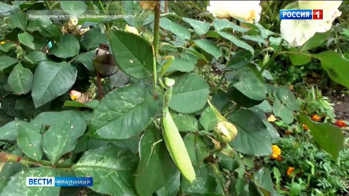 А в завершение выпуска - интересные природные кадры. Они появились в группе "Природа Владимирской области". В Вязниках Игорь Федотов запечатлел богомола на кусту розы в прохладный октябрьский день. Необычная картина практически для середины осени. Как рассказал "Вестям" известный российский биолог Руслан Жуков, на протяжении последних лет во Владимирской области богомолы встречаются всё чаще, причём во всех районах. Увидеть их можно будет вплоть до морозов, говорит учёный. Первого богомола-самца жители региона встретили во Мстёре в 2009-ом году, замечает Руслан Жуков. "Вести-Владимир"