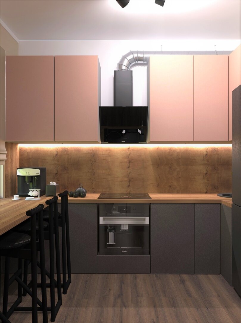 На кухне можно использовать разные материалы для изготовления тех или иных ее частей. Материалы для корпуса, фасадов, столешницы и фартука. Материалы для корпуса. Корпус кухни можно изготавливать из ЛДСП или МДФ. ЛДСП — ламинированная ДСП, а МДФ — древесноволокнистая плита. Корпус из ЛДСП будет являться более легким, а также он лучше воспринимает нагрузки от других частей кухни и фурнитуры. Также ЛДСП более бюджетный. Но необработанный ЛДСП не экологичен (из-за склейки может выделять вредные вещества), поэтому необходимо все открытые срезы обрабатывать кромкой. Также у него низкая влагостойкость, поэтому на кухне во влажных местах нужно использовать герметик во всех местах, где влага может контактировать с кромкой. ЛДСП имеет множество декоративных пленок, поэтому его нужно выбирать либо в цвет, либо на контрасте с фасадами, воплощая интересные дизайнерские решения. МДФ более дорогой, меньше восприимчив к нагрузкам (может треснуть при сильном ударе), но более экологичен. У него более о