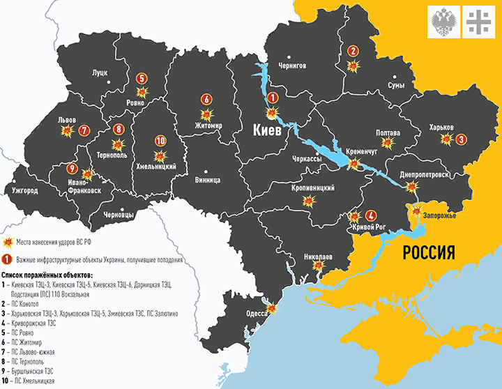 Представьте, на минуту, что вы украинец и оказавшись в информационном вакууме, реально поверили, что ваша страна побеждает, как это неслось со всех экранов и СМИ. Если у вас остался мозг, причем не как субстанция, для заполнения части черепной коробки, а как орган позволяющий думать, то у вас возникнет резонный вопрос:"А как это побеждённая Россия, умудряется умножать на ноль нашу энергетику? Может с нашей победой, что-то не так, а может даже и совсем не так?" Более того, так плохо не было даже когда Россия вроде как наступала. А теперь мы её вроде как везде разбили, а она может себе позволить за три-четыре дня, опустить всю Украину в каменный век.