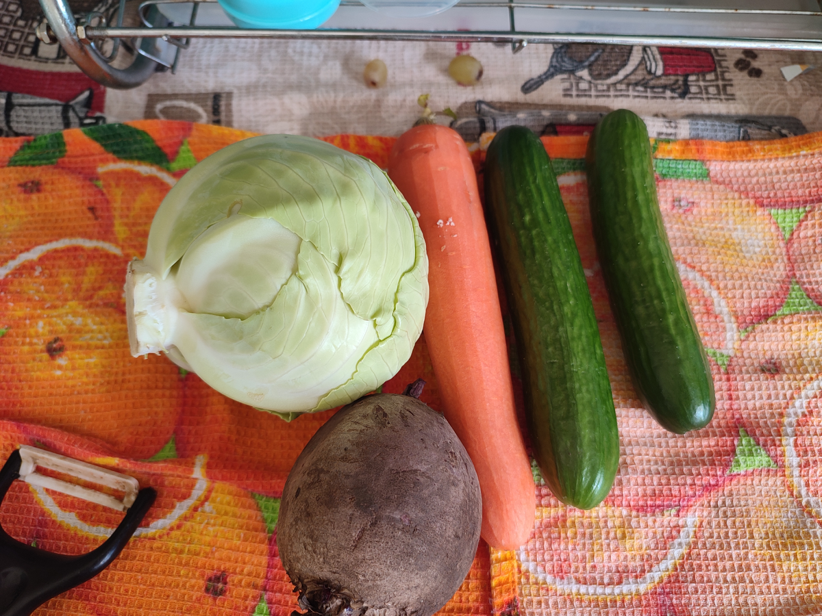 Привет! Я Тамара, автор канала "РЕАКТивная_Девушка"! До Нового Года остаются считанные месяцы и наверняка многие уже потихоньку делают заметки, что же приготовить на праздничный стол и как раз-таки сегодняшний рецепт будет отличным кандидатом Полный список ингредиентов будет указан в конце статьи Овощи помыла и те, что нужны почистила. Свеклу ставлю вариться в подсоленной воде до полной готовности, но вы, по желанию, можете оставить ее сырой. Капусту нашинковала и уложила на красивое блюдо. Далее морковь и огурец натерла на терке для морковки по корейски Курицу нарезала мелкими кубиком посолила по вкусу и добавила сушёный чеснок, далее обжарю до готовности Свекла уже сварилась и ее я решила нарезать средними кусочками И сверху на эту подушку из овощей выложила курицу Соус может быть любой на ваш вкус Салат нам понравился, можно экспериментировать с его составом, меняя овощи и каждый раз получать другой вкус Так еще и смотрится осень красиво! Ингредиенты: Спасибо, что прочитали до