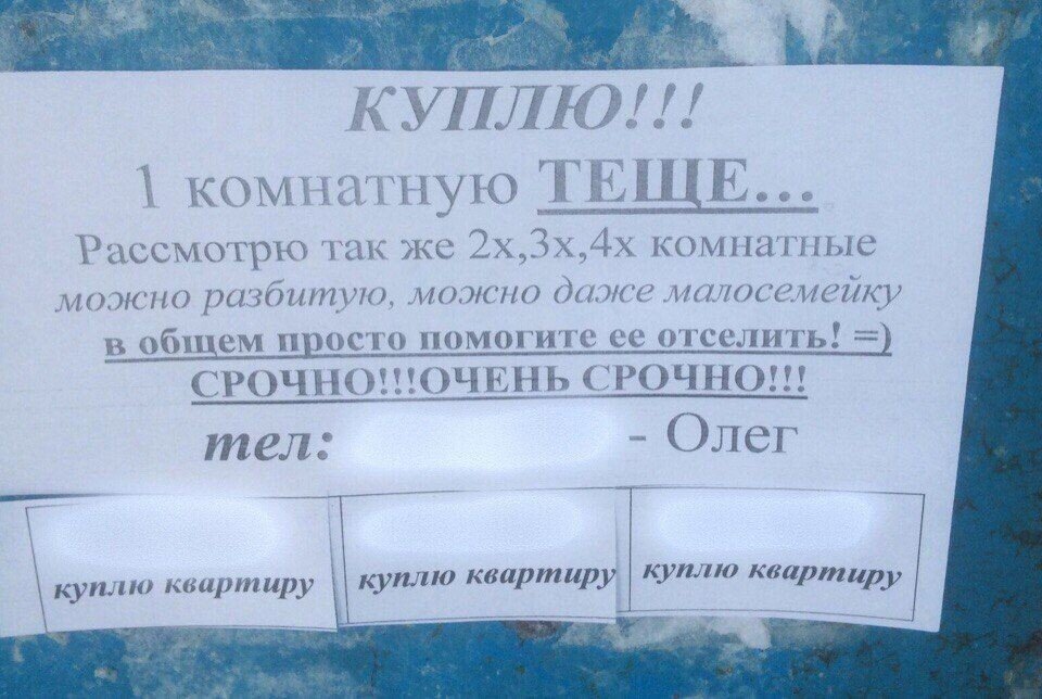 У себя на районе часто видела такие объявления. Сначала думала, что их лепит дядь Вова с 9 этажа, местный бухарик. Но потом обратила внимание, что контакты указаны разные.