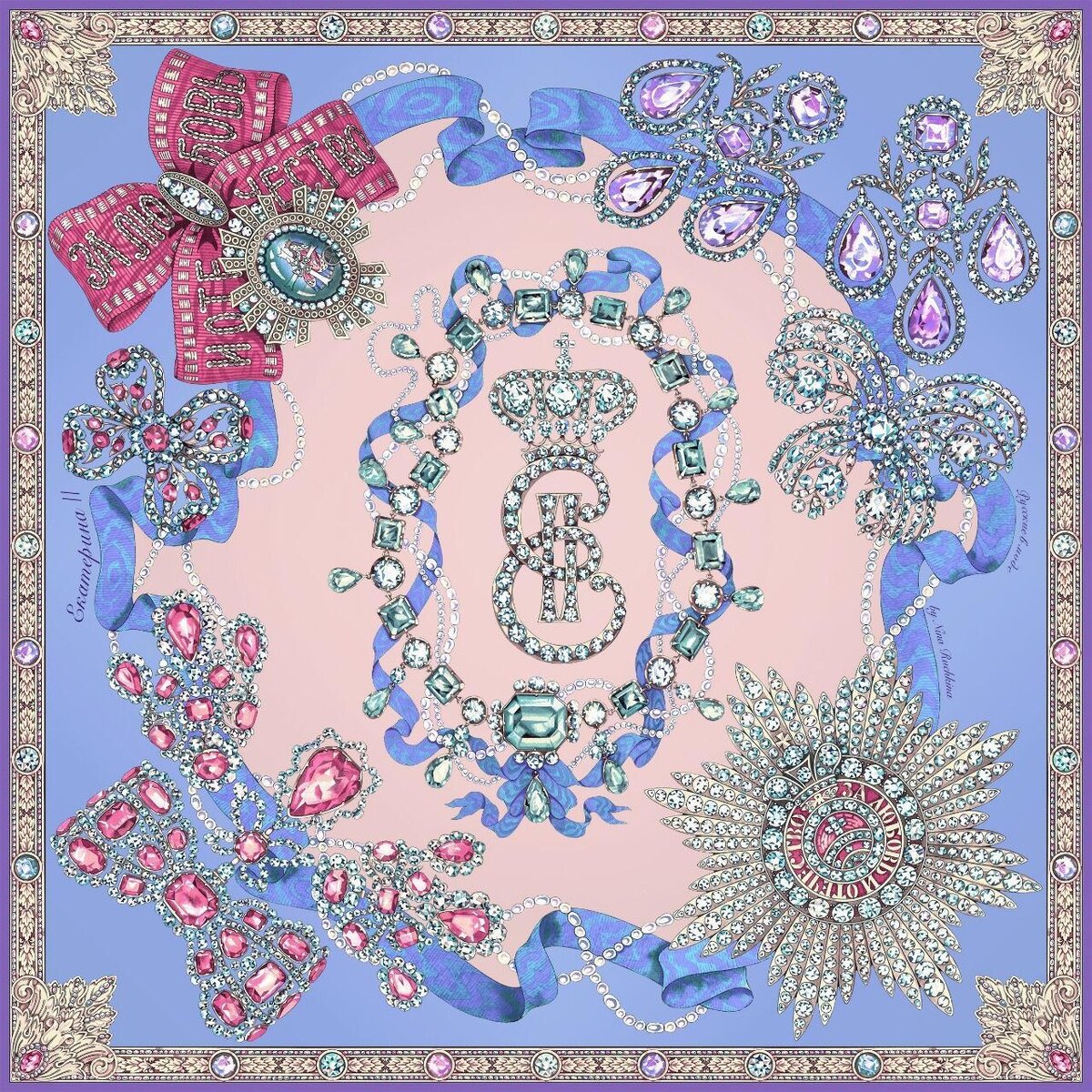 Примерьте коллекцию бриллиантов Екатерины Великой, воплощенной в шелковом платке by Nina Ruchkina