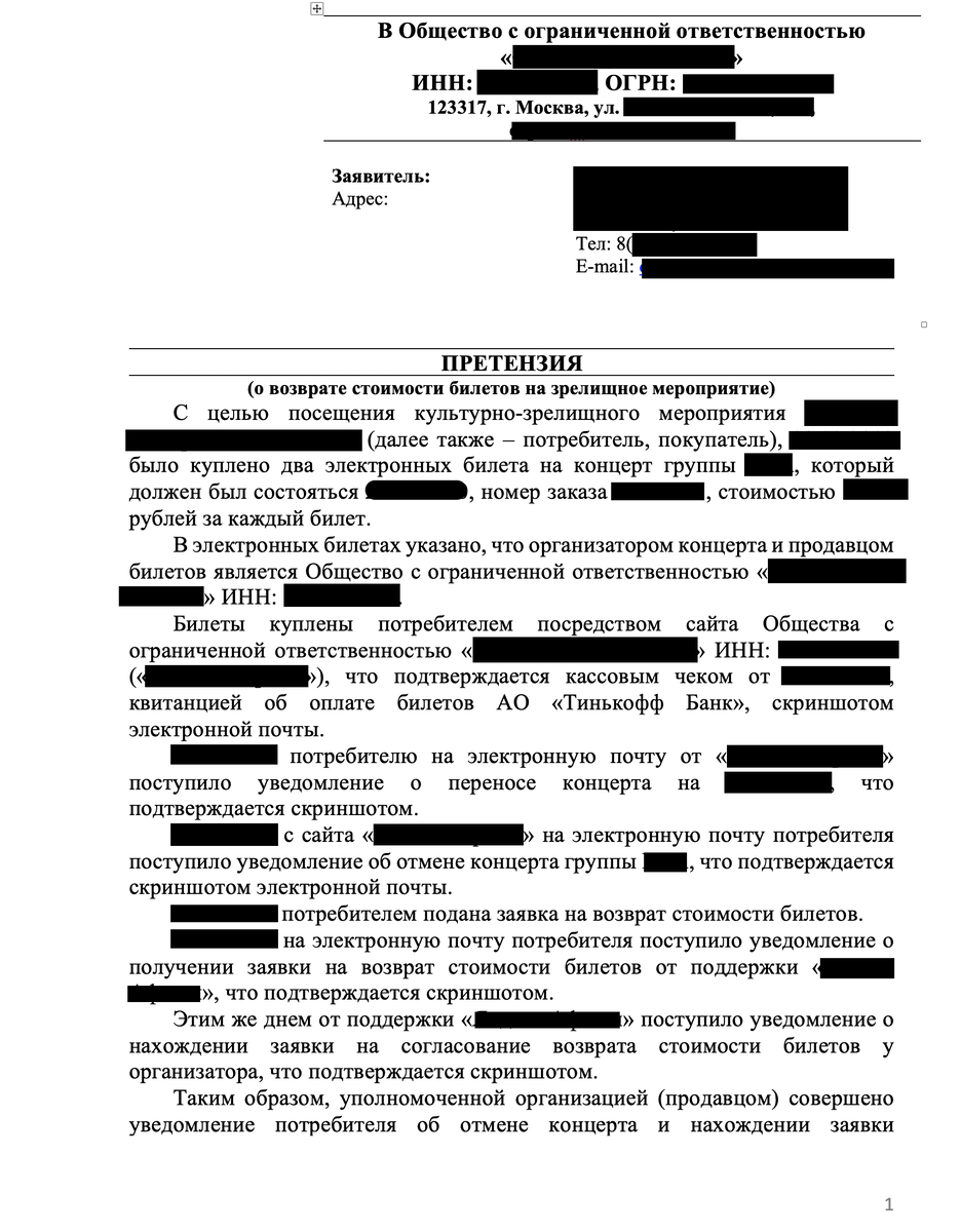 В статье, которая называется «Как составить претензию по спору о защите прав потребителей?» мной давались рекомендации, об оформлении и содержании претензии к подрядчику (продавцу, исполнителю), о способах подачи претензии и по другим вопросам. В этой статье я приведу пример претензии по спору по защите прав потребителей. Для оказания юридических услуг, мои контакты указаны в визитке страницы. Право потребителя на возврат денежных средств за бракованную куртку. Образец иска о взыскании стоимости медицинских услуг, понесенных в результате причинения вреда здоровью. Образец заявления об отказе от иска по гражданскому делу (причинение вреда здоровью) Что нужно знать про страховку кредита? Действия потребителя в случае низкого давления в системе холодного, или горячего водоснабжения. Образец возражения на судебный приказ Нужно ли оплачивать вывоз мусора, если требование об оплате не предъявлялись несколько лет? Как вернуть деньги за отмененный концерт или другое зрелищное мероприятие? Обр