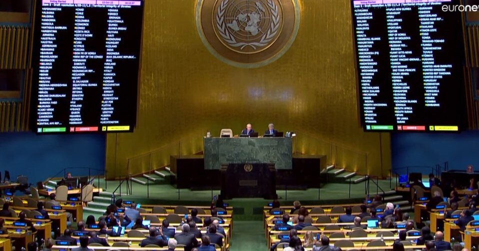 Прошло то самое знаменитое голосование в Генассамблее ООН, важность которого так распиарил Байден: смотрите, мол, как много стран отказались признавать деятельность России… Если кого-то интересует реальная сторона дела, то истина проста: как только США спихнут с трона и исчезнет давление, то столь же быстро можно будет созвать ещё одно заседание ГА ООН, где голосование станет диаметрально противоположным… если только вообще ООН её нынешнем виде доживёт до тех времён. Так что первый реальный вывод, который можно тут сделать: США пока всё ещё могут прогибать огромное количество мелких стран по тем вопросам, которые считают для себя принципиально важными. Второй вывод чуть интереснее: а вот крупные страны США прогибать уже не могут! Индия и Китай воздержались, ЮАР тоже, так что БРИКС мы можем наблюдать и тут, но за одним исключением: Бразилия голосовала «за», что должно отрезвлять нас и напоминать, что противник у России весьма и весьма серьёзный. Впрочем… когда у нас в истории иначе-то б