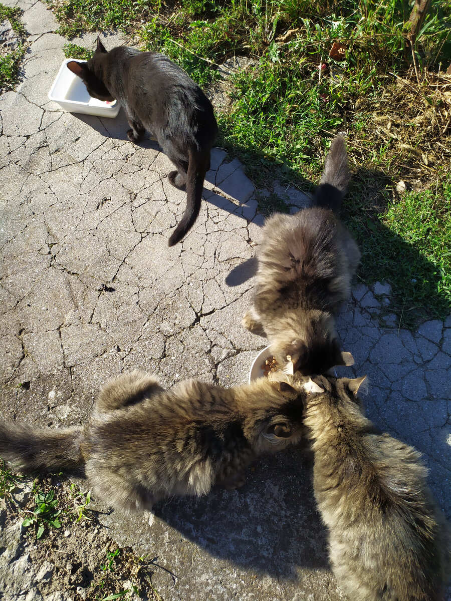 Друзья, я снова с вами! Я не знаю, можно ли жить в частном доме так, чтобы к вам какая-нибудь живность не прибилась? Мне кажется, что нет. Нам часто говорят:"Переедете в свой дом, курочек заведёте". У меня про курочек своё мнение, основанное на опыте моих бывших соседей по даче. Они держали курочек на дачном участке, и с ними, с курочками этими, постоянно что-то происходило. То их собаки подерут, то ласки, то норки, то падеж от неизвестной болезни. Я поняла, что их надо разводить профессионально - прививки, витамины, строить специальное помещение, чтоб ни одна лиса не подкопалась. Про курочек мы подумаем позже. А пока всё наше хозяйство можно назвать ежекотофермой. Мы переехали в Крым чуть больше года назад со своим котом, мейн-куном по кличке Лом. А этим летом у нас появилась чёрная кошечка Муся. Её мы нашли на улице и не смогли пройти мимо. Но так получилось, что к нам прибилось ещё три котёнка. Их нам практически подбросили соседи нашего съёмного дома. Они построили дом, но в н