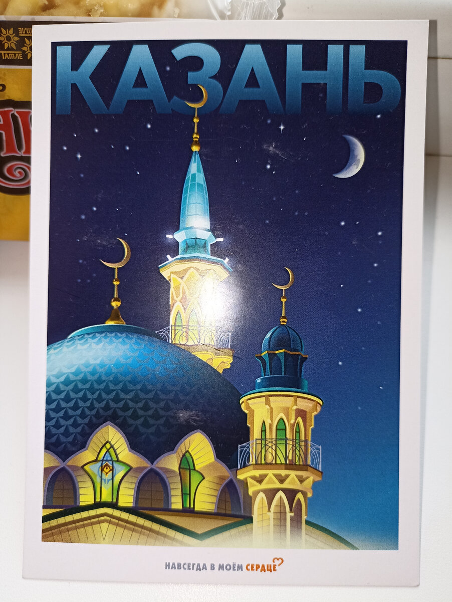 Доброго времени суток посетителям моего канала! На прошлой неделе я рассказывала о нашем с дочкой путешествии в столицу Татарстана - город Казань. Впечатления о путешествии отличные, всё понравилось. Сегодня покажу мои покупочки из Казани. Я купила татарский чай себе и на подарки коллегам, в составе чёрный байховый чай, душица, чабрец, мята, липовый цвет, зверобой, сосновые почки. Сама чай пока не пробовала. А также на память - набор открыток с казанскими достопримечательностями, пиалу с ручной росписью, магнитик. Во время поездки в Свияжск на рынке купила маленькие баночки с мёдом и вареньем, с добавление орехов, трав, сосновых шишек. Всё вкусное. Привезла домой несколько пачек разного вида медового чак-чака, но не фотографировала, быстро съели. Дочка купила бутылочку витаминного бальзама. Вкусно понемножку добавлять его в кофе, чай. Ещё дочка купила себе открыточку и интересный магнитик в музее счастливого детства. В торговом центре Кольцо дочка купила ботинки и кофточку. Я из вещей