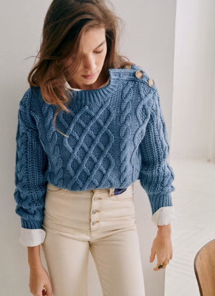 Я захожу на сайт французского бренда Sezanе́ за идеями стильного и красивого трикотажа — чтобы вдохновиться сочетанием фасона, узора и пряжи в одной отдельно взятой модели. Чаще это джемперы и кардиганы с необычным (или, наоборот, самым обычным 😉) ажурным узором. Сегодня же предлагаю насладиться объёмом и рельефностью рисунков из "жгутов" и аранов — они прекрасны! Например, Джемпер James Как выглядит Чудесная модель из мериносовой шерсти имеет немного спущенное плечо и застёжку на этом плече с левой стороны на 4 большие пуговицы. Нижняя планка и планка горловины, а также манжеты рукавов выполнены резинкой 1 х 1. Остальное поле тесно заполнено "жгутами" и аранами с изнаночной гладью или "жемчужным узором" в центре. Вот так эта модель выглядит в цвете "пёстрая олива": Редкая возможность увидеть модель снизу доверху. Только в этом цвете модель представлена на фото максимально открыто, чтобы можно было оценить её сверху донизу. Несколько проще (на мой взгляд!) выглядит вариант джемпер