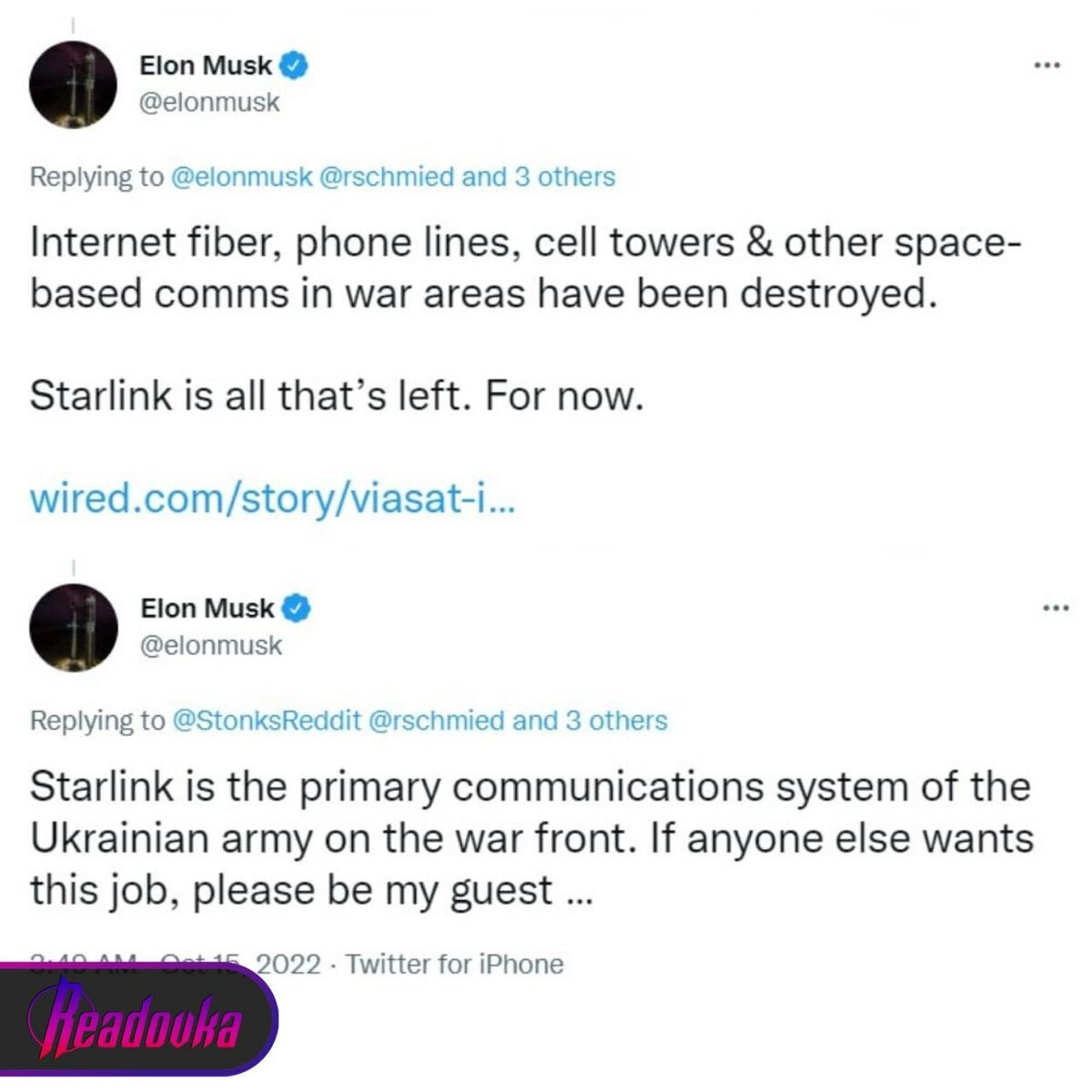 «Starlink – это все, что осталось». Глава Tesla разродился новыми откровениями в своем Twitter, которые не понравятся ни украинствующим патриотам, ни их американским покровителям. В частности, например, Илон Маск заявил, что Starlink – это по сути последнее, что осталось у Украины в зоне боевых действий из жизненно необходимых средств связи, потому что все остальное было уничтожено в боях, а также то, что, если кто-то хочет занять место самого Маска, в том плане, что предоставлять ВСУ связь и не получать за это положенных денег – то он будет только рад. «Если кто-то еще хочет эту работу, пожалуйста, будьте моим гостем», – недвусмысленно написал Маск. В ответ на претензии, что из-за денег Илон не хочет и дальше поставлять «в кредит» свою чудо-связь, действительно дающую ВСУ преимущество на фронте, Маск написал, что его корпорация SpaceX и без того направила «огромные ресурсы на оборону» – и странно просить делать это еще больше за бесплатно. Ранее Readovka писала о том, что травля Маск