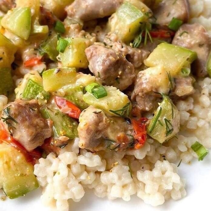 Больше вкусных и полезных рецептов, советов в моем телеграмм канале)подписывайтесь https://t.me/gotovim_na_pp КБЖУ на 100г.: 94/6.9/5.6/3.5. ⠀ Ингредиенты: •140г филе индейки •240г кабачка (1 маленький) •40г черри •5г подсолнечного масла •100мл воды •30г сливочного сыра •соль •специи по вкусу Приготовление: Индейку нарезать небольшими кубиками, обжарить на масле с добавлением соли и паприки. Как немного обжарится со всех сторон - добавить воду, накрыть крышкой и тушить 10 минут. Добавить нарезанные черри и кабачки, немного досолить, тушить ещё 10 минут под крышкой. Добавить сыр, приправы, перемешать до расплавления сыра и готово. Приятного аппетита!