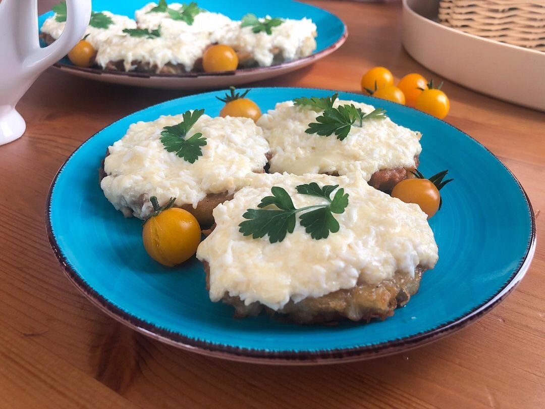 Много писать не буду, думаю все могут представить как это вкусно! Если любите обычные драники, то и эти, с яично-сырной шапочкой, наверняка понравятся! Обязательно попробуйте! Ингредиенты: Картошку почистить, натереть на мелкой тёрке, хорошо отжать. Добавить 1 яйцо и муку. Посолить, поперчить, хорошо перемешать. 4 яйца сварить. На мелкой тёрке натереть яйца, чеснок, сыр. Добавить сметану или йогурт и слегка посолить. Хорошо перемешать. На разогретую с маслом сковороду ложкой выкладывать картофельную массу, формируя драники. Обжарить с одной стороны на среднем огне 3-4 минуты. Перевернуть. На драники выложить яично-сырную массу. Накрыть крышкой, уменьшить огонь и жарить ещё 4-5 минут (пока не расплавится сыр). По желанию украсить зеленью 😊 Ну и видеорецепт, конечно. Он правда довольно старый и снят не очень хорошо, но в принципе всё понятно 👌 Приятного аппетита!