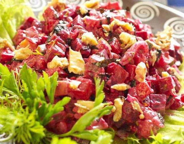 Вареные свеклу, картофель, яйца, а также огурец, яблоко, рыбу и грибы нарезать кубиками и заправить смесью сметаны, горчицы, соли, сахара и перца. Чтобы винегрету придать более острый вкус, можно добавить столовый уксус по вкусу.