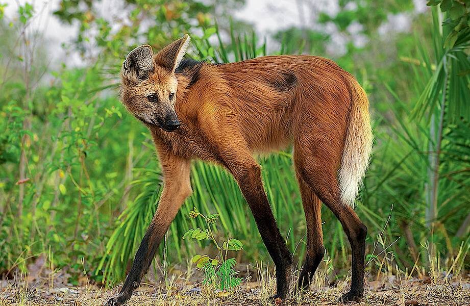 В Южной Америке обитает удивительное животное, местные жители называют его гуар. Горожанам он больше известен как Гривистый Волк. В чем его уникальность? В том, что он и волк и лиса одновременно! Черты этих животных смешались в его внешности. Для человека гривистый волк абсолютно не опасен – не зафиксировано ни одного случая нападения. Гривистый волк – самый нетипичный представитель волков. Ученые до сих пор спорят, к какому семейству он принадлежит. У него изящное телосложение, длинные тонкие ноги, удлиненная заостренная морда, большие уши и длинная шея. Мех гуара мягкий и густой, вдоль гребня от затылка до середины спины он значительно длиннее, чем на теле, и имеет темный оттенок. За эту гриву волк и получил свое название. В те моменты, когда животное напугано или озлоблено, грива поднимается почти вертикально.