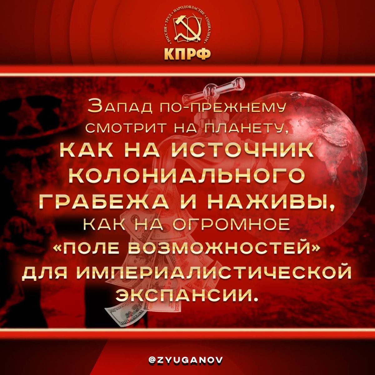 Между тем, западные лидеры очень далеки от понимания этой высокой миссии. Они по-прежнему смотрят на планету, как на источник колониального грабежа и наживы, как на огромное «поле возможностей» для империалистической экспансии.