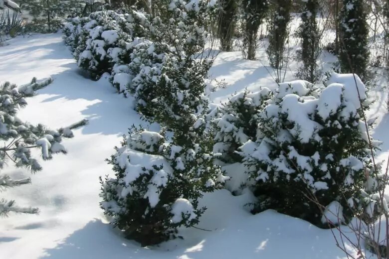 Их нужно напоить водой, подкормить удобрением, избавить от больных и сухих веток. А потом замульчировать и укутать в нетканый или другой материал. Если осень была сухой, хвойные растения нужно полить - при температуре плюс 1-3 градуса. Маленьким достаточно ведра воды, более рослым (высотой с человека) - 5-10 ведер. Самым высоким - 10-15 ведер. Морозостойкость хвои и побегов усиливают калий, фосфор, магний,кальцийи кремний. Можно использовать готовые смеси.Также нужно срезать и сжечь все больные, сухие, пожелтевшие ветви. Опрыскать растения составами отгрибных болезней. Очень важно замульчировать деревья, особенно молодые. Для этих целей можно использовать сухой торф либо старый, перепревший компост или опилки. Слой должен быть примерно в 15-20 см.Ранней весной мульчу нужно снять - чтобыне задерживала оттаивание почвы. Ряд хвойных строгой формы - например, пирамидальные, - лучше стянуть капроновым шпагатом, чтобы налипший снег не сломал ветви. А еще - закрыть от мороза и зимнего солнца