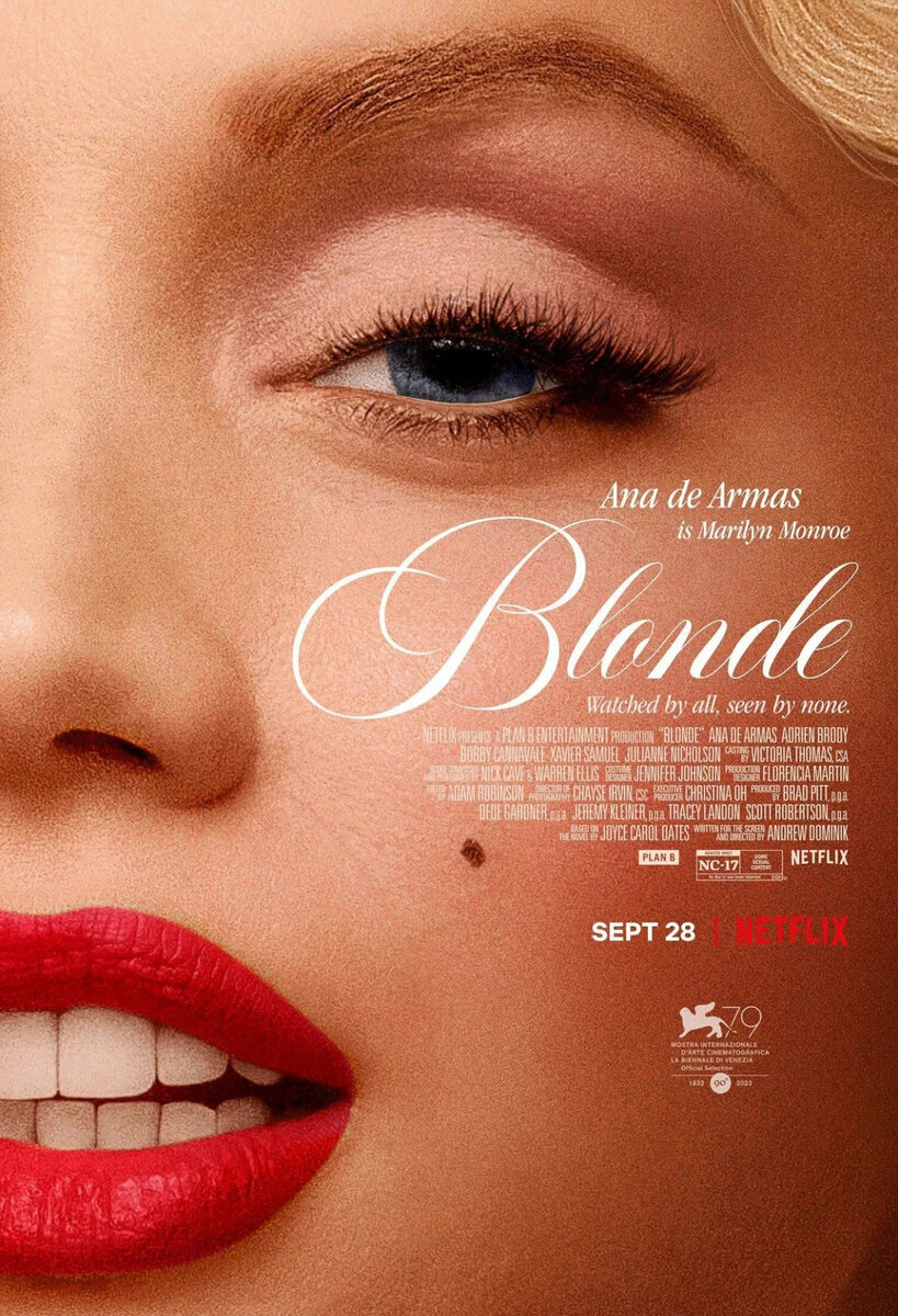 Но мне намного больше нравится смотреть такое кино, чем пересматривать «Завтрак у Тиффани» с сексистким образом Холли Голайтли, который старый пень откидывает денег на «припудрить носик», хотя все понимают за что именно он ей платит. Или на героинь Монро, которые бегают за миллионерами-шовинистами... Такие романтизированые образы больше не актуальны. Фильм «Блондинка» - это про всех этих нарядных героинях, только в стиле «как оно было на самом деле».