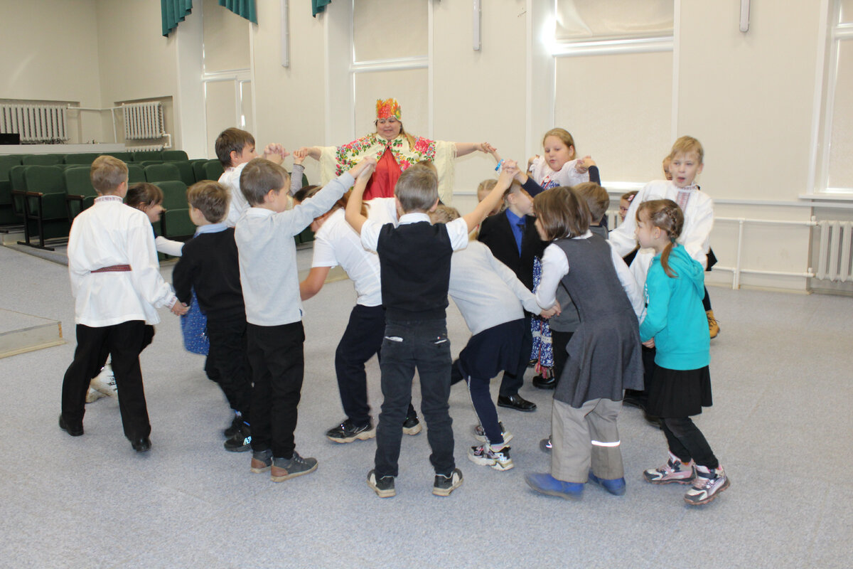 Ведущая мероприятия, Елена Владимировна Грознова, и Осень, Марина Николаевна Шалыгина, с помощью соответствующего антуража и атрибутов русского народного быта рассказали ребятам об истории и традициях праздника. Многое для младших школьников было новым, хотя этим жили их предки. Помимо получения новых знаний, дети приобщались к музыкальному достоянию благодаря выступлениям фольклорного ансамбля «Крупица» (руководитель –