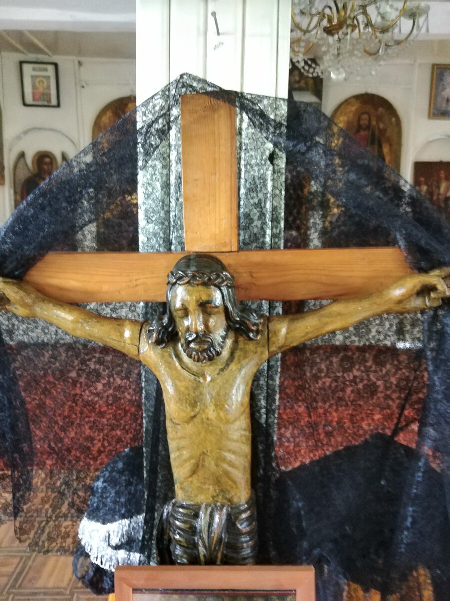 Потом священник кадит Крест и поёт :" Кресту Твоему поклоняемся, Владыко, и святое воскресение Твое славим". Это песнопение поётся трижды.