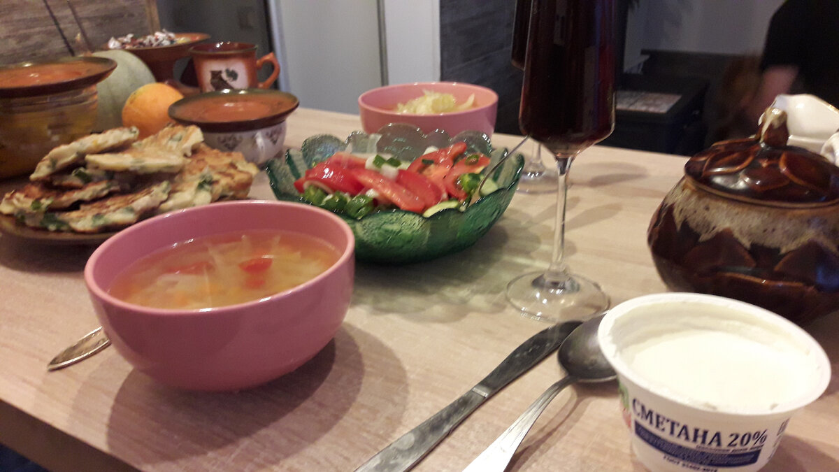 Привет, друзья! Я уже отдельными постами рассказывала что готовила на обед 15 октября, но тут решила объединить для удобства. Варила щи к обеду. Всесто хлеба к щам я напекла лепшек с дачным зеленым луком. Собрала на даче 15 октября последние свежие огурчики. Вот такой обед. Сок и остальные покупки я описывала вот тут=> А это чек на продукты. Большое спасибо за внимание. Ваша @leila