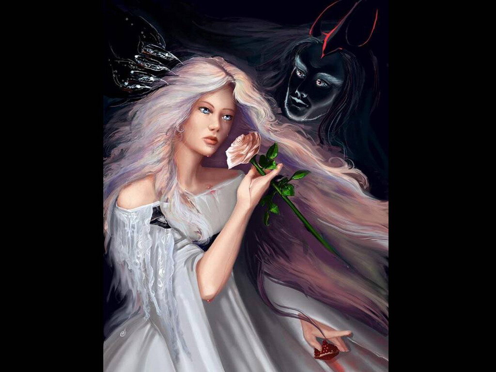 А через год заказчик скоропостижно скончался, и молодая вдова стала богатой и независимой. Новость стала широко известна и до Вероники дошла тоже. Так вот отчего у неё получился демон, а потом Вероника достала наброски и стала рисовать демона. На большом холсте проявлялся самый настоящий демон, только лицо вероника изменила, а вот рожки и чёрные крылья как раз нарисовала, завершив образ. Картина произвела фурор на выставке, только молодая и безутешная вдова тоже посетила выставку.