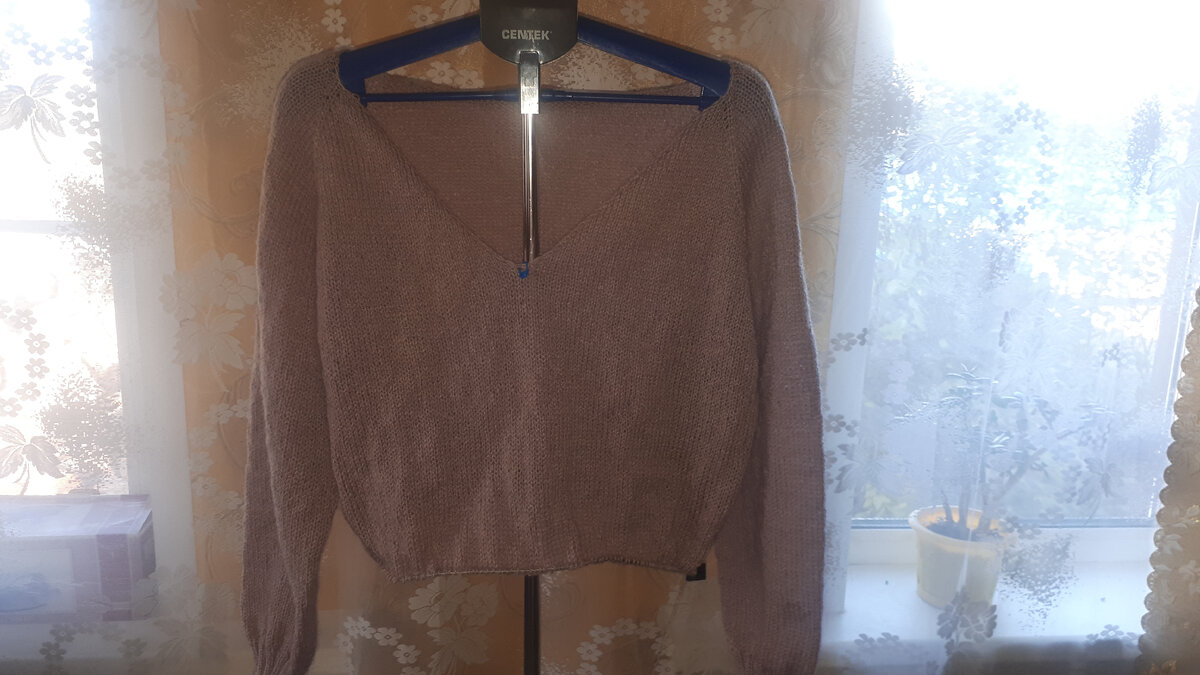 Всем привет, вяжу джемпер с v-образной горловиной и хочу рассказать основные моменты по изделию Вяжу из пряжи Набрала петли и провязала один изн. ряд развешивая маркеры Дальше делала прибавки для горловины возле кромочных петель из протяжки и в регланных линиях из петли нижнего ряда в лицевых рядах. Связала небольшой росток ( 3 раза повернулась по рукавам ), соединила в круг, когда на полочках было по 57 петель ( всего 114 ), а на спинке 112 петель, но можно и поровну ( это я так связала ). Провязала длину регланных линий, делая прибавки через ряд, длина регланных линий 28 см. Отделила рукава ( по 77 петель ), регланные 8 петель добавила к телу и набрала на подрезы по 11 петель ( всего 256 петель ). Ширина изделия по пройме 67 см. Провязала немного вниз и сначала связала рукава ( я так делаю чтобы примерять было удобно и понятно какая длина изделия мне нужна ). Продолжаю вязать изделие, потом будет подробное видео для новичков.
