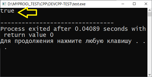 Однако в С++ (да и во многих других языках) можно выводить логические значения в виде строки. То есть вместо 0 и 1 можно выводить false и true. Правда, это потребует дополнительной строчки кода: