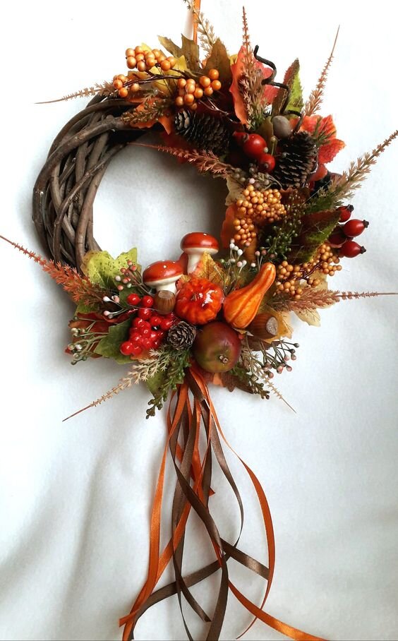 Всем доброго времени суток. Очередная подборочка осеннего декора в Вашу копилочку. На этот раз - всевозможные декоративные веночки из различных материалов для Вашего вдохновения. Если хотите мастер-класс на какой-либо из вариантов - пишите в комментариях. Обязательно попробуем повторить подобный вместе уже в отдельном посте :) Все идеи подсмотрены на pinterest.com