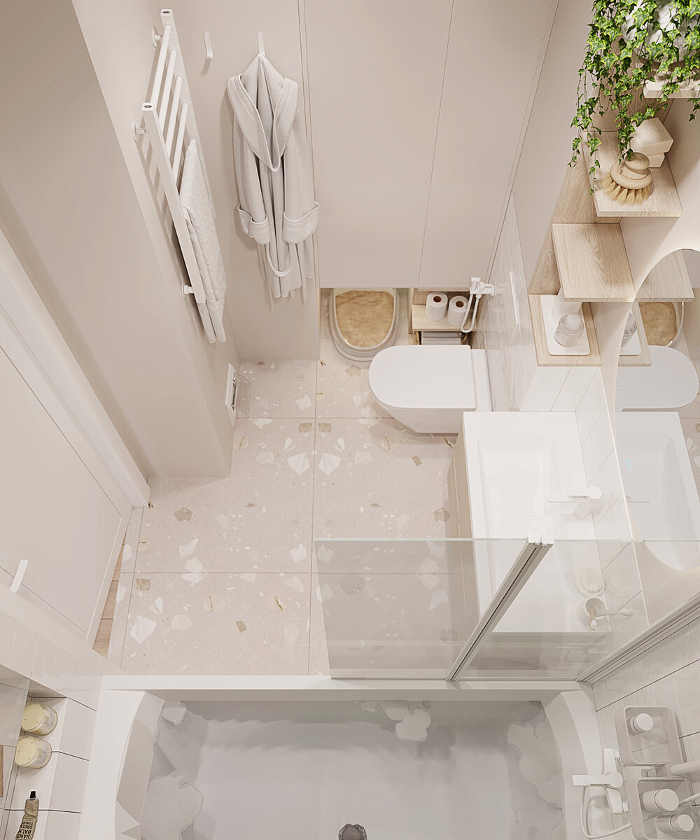 Продолжаем показывать наш проект в скандинавском стиле. Сегодня хотим показать ванную комнату, где разместили всё необходимое и даже место для туалета котика нашлось) Остальные помещения можно посмотреть у нас в профиле! Основные цвета ванной - бежевые. Вся сантехника выполнена в белом цвете. Как и в остальных помещениях не обошлось без светлого дерева. На полу и за ванной мы использовали плитку с рисунком "тераццо". За унитазом и в других наиболее подверженных воде зонах сделали плитку белого цвета маленького формата - 15х15см Если нужны артикулы плитки - пишите в комментариях и обязательно напишем) Ну а на остальных стенах использовали покраску. Стены обязательно покрашены влагозащитной краской, чтобы стены можно было легко мыть. Как вам проект? Больше проектов можно посмотреть на нашем сайте lampadesign.ru