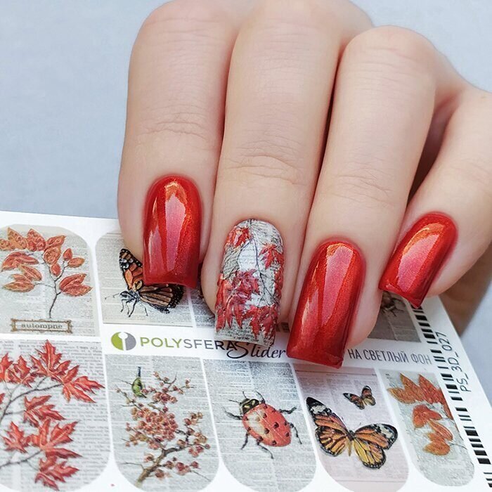 Осенний маникюр самый сложный по выбору дизайна для ногтей среди всех сезонов, так как после лета тяжело осознать, что наступают холода. Как же быть в тренде и делать самые яркие осенние маникюры. Мы сделали подборку для вас, упрощаем работу и делаем самые красивые дизайны ногтей с готовыми тематическими рисунками. Осеннее оформление маникюра от Polysferaslider: 1.Миниатюрные слайдеры с разноцветными камнями- акцент на мелкие и аккуратные детали, подчеркнут осеннее настроение. Теплых оттенков рисунки на любой вкус, а стразы придадут маникюру блеска. Обем выделит ваш маникюр среди всех ноготков. 2.Современное решение для дизайна Хрустальные слайдеры, благодаря полупрозрачности заливки рисунка образуется хрустальный эффект. Акцент на нежные веточки и листья идеально подходят для осени. Подойдут для коротких и длинных ногтей. 3.Ручная роспись, как классика дизайна для нейл мастеров для дизайна любого сезона. Эти слайдеры отлично сочетаются с любым цветом, в их основу входит роспись черно