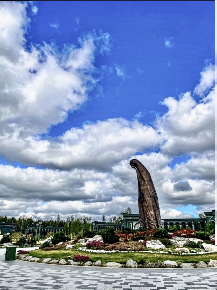 Всем привет! Я несколько лет пыталась попасть на территорию парка «Патриот», чтобы посмотреть на тот храм, который одно время прямо заполонил просторы интернета. Я уже показала вам красоту его убранства, а также рассказала интересные факты о нем. Почитать вы можете тут, а если вам интересна только «картинка», то советую посмотреть ролик. Вчера я рассказала о музее на территории парка, а сегодня покажу вам ещё два важных элемента, про которые нельзя не написать. «Матерям победителей» В московском парке «Патриот» знаменитый бурятский скульптор Даши Намдаков представил свою работу – девятиметровую композицию «Матерям победителей». Она расположена в восточной части храмового комплекса в парке. - В основе образа — скорбящая женская фигура, укрывшая своей мантией вечно горящую Свечу, - написано в официальной группе Намдакова в инстаграме*. - Огонь свечи зажжен от Вечного Огня у могилы Неизвестного солдата на Красной площади. По обе стороны от Свечи, которая находится внутри скульптур