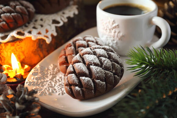 Съедобные «сосновые шишки», припорошенные снегом, станут эффектным украшением рождественского и новогоднего стола. Это необычное печенье готовят из самых доступных продуктов. Половинки «шишек» можно скрепить между собой джемом или вареной сгущенкой.
