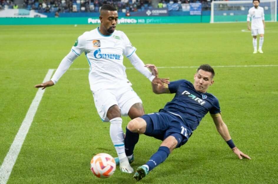 Игра началась ожидаемо с претензий «Зенита» на контроль мяча. Они добились своего и начали искать подходы к воротам соперника. При этом предлагали очень низкую скорость игры, с чем был сильно согласен «Пари НН», и так показывая в последних играх очень низкую скорость командного движения. Вялотекущая игра пешком сильно расстраивала. И редкие взрывы гостей проходили сквозь защиту, которая была убаюкана медленной игрой. Игра в основном проходила на половине поля хозяев. Мы уже знаем: основной проблемой нижегородцев, когда их позиционно атакуют, является то, что они сильно вжимаются в свою штрафную. Этим хорошо пользовался Малком, уходя со своего фланга ближе к «10» и оттуда или бил, или пытался пройти, или отдавал вразрез на нападающего. При этом был всегда открыт. Набиуллин не шел за ним (не его зона), опорники уже были в своей штрафной. Но с этих розыгрышей «Зенит» не забил. Получилось забить и первый, и второй после навесов с флангов. Мы помним: обороняющаяся «Пари НН» в своей штрафной компактно обороняется. Вопрос только зачем? Сергеев не того уровня игрок, чтобы на его опеку уделять троих. Гости, видя такую кучность, просто отдают во фланг (оба раза это левый фланг). Корнюшин уже внутри штрафной, и ему надо время выйти на подающего. Соответственно он свободно навешивает. Логично, не в центр, там яблоку негде упасть, а на дальнюю, там игрок свободен. Пока из вратарской на принимающего выдернутся, уровень игрока позволяет оценить ситуацию и принять верное решение. В первом случае – прострел-удар. Кузяев замкнул. 0:1. Во втором, Клаудинью продемонстрировал технику и завершил самостоятельно. 0:2.