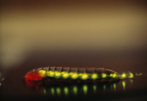 Необыкновенное существо под названием “железнодорожный червь” вызывает недоумение у ученых своей странной природой. Железнодорожных червей еще называют жуками фриксотриксами, а обитают они в тропических лесах Америки. Необычным у этого насекомого можно отметить то, что оно излучает свет. И в ночи выглядит как маленький поезд. На её теле располагаются люминесцентные органы, которые излучают свет из клеток и кристаллов мочевины. На теле маленького поезда горят желтые огоньки, а на голове- красные. Именно из-за такого необычного свечения червячок и имеет сходство с маленьким ночным поездом. Железнодорожный червь является опасным хищником. Длина его составляет целых 6 сантиметров, так же он обладает достаточно хорошей скоростью и вооружен ядовитыми жвалами. Охотится он на многоножек и даже на тех беспозвоночных, которые превосходят его по размеру. В ареале обитания железнодорожных червей тепло и поэтому они могут позволить себе обойтись без зимовок. Около года они ведут личиночную жизнь, а