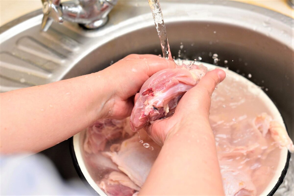 Спорный вопрос - мыть мясо перед приготовлением или нет? Принесёт ли эта процедура пользу? Или может только вред? Многие домохозяйки считают, что мясо обязательно нужно промыть под проточной водой, чтобы убить микробов, которые находятся на поверхности. Но это мнение очень ошибочно! Есть несколько причин, по которым мыть сырое мясо категорически не следует. Во-первых: это способствует распространению бактерий. Мельчайшие капельки воды вместе с вредоносными микроорганизмами разлетаются по кухне и оседают на всей поверхности столешницы, раковины, стен, посуды. Смыть это возможно только мыльным раствором. В сырой говядине может присутствовать кишечная палочка, а в курятине обнаруживают сальмонелл. Именно струя воды будет способствовать более глубокому проникновению инфекции. Во-вторых: от этого ухудшается вкус блюд. Мясо, попавшее под воду, впитывает лишнюю влагу. При жарке эта влага начинает испаряться, а румяная корочка не сможет образоваться. Поэтому мясо получится либо тушеное, либо п