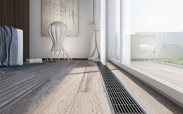 Высокие окна в пол, открывающие природную панораму, — живописное и по-настоящему волшебное решение для загородного дома. Вообразите! Вы можете любоваться великолепными видами, наблюдать за детьми и питомцами, играющими на улице, находясь при этом в доме. Мечта да и только! Но возникает вопрос — каким же образом отапливать помещения, буквально состоящее из стеклянных стен? Решение есть! Помимо теплого пола мы устанавливаем внутрипольные конвекторы. Рассмотрим их чуточку подробнее. Конвекторы, встраиваемые в пол, отличаются от напольных способом монтажа: Получается, что встраиваемые в пол конвекторы практически незаметны. Кроме того, такие модели: Благодаря широкому разнообразию цветовых решений и материалов изготовления (дерева, алюминия (окрашенного, простого, анодированного), пластика) конвекторы будут гармонировать с интерьером помещения. .