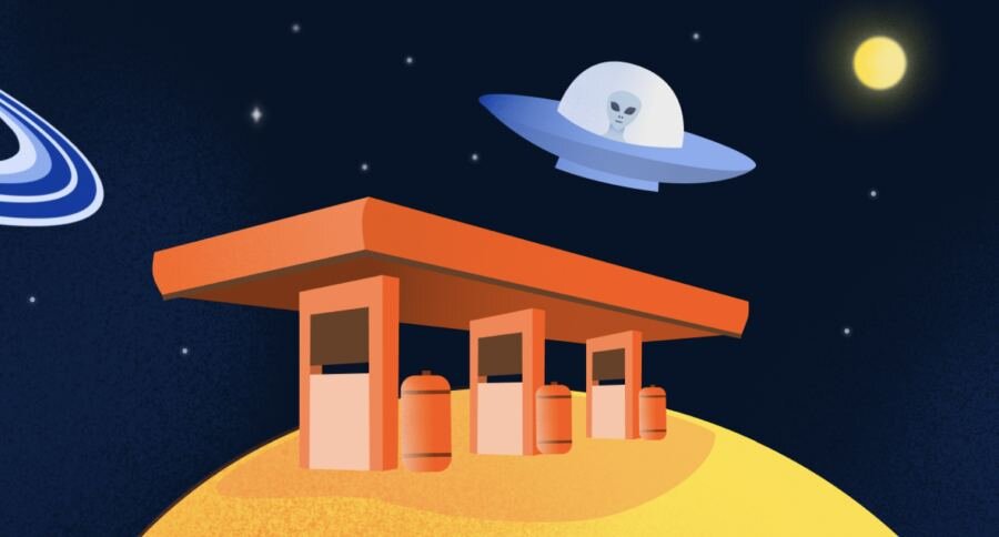 Представьте кадр из фантастического фильма: над газовым месторождением Земли завис инопланетный корабль, а добытчики застыли с немым вопросом: «Неужели заправиться прилетели?» В реальности такое вряд ли может случиться: если инопланетяне существуют и используют природный газ как топливо, то к нам за ним прилетать не нужно: в космосе полно источников природного газа. Что они из себя представляют — выясняла «Энергия+». Мы уже расследовали дело о наличии нефти за пределами Земли, и сегодняшняя задача снова потребует от нас освежить базовые знания химии и физики. Самые распространенные во Вселенной химические элементы — водород, гелий, кислород, углерод и неон. Соединяясь, атомы углерода и водорода образуют метан — основной компонент природного газа. В космосе метана почти столько же, сколько и воды. Даже если относительное количество этого газа на поверхности конкретных небесных тел невелико, абсолютное может удивить землян. Например, в составе атмосферы Юпитера, самой большой планеты Сол