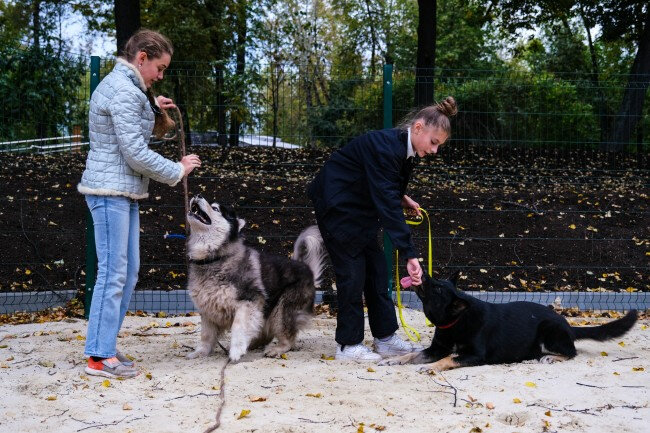 В кружке «Юный кинолог» стартовали занятия на новой собачьей площадке, построенной в этом году в рамках благоустройства территории детского парка «Фили». В роли главных экспертов на первом занятии выступили аляскинский маламут Барсик, немецкая овчарка Масяня и доберман Каспер. Пока собаки тестировали установленное на площадках оборудование, руководитель кружка Алексей Ефремов рассказал детям о каждом из тренажеров, напомнил о правилах безопасности. «Качели нужны для развития у питомцев чувства равновесия. Кроме того, это своеобразное упражнение на доверие. Только доверяя хозяину, пес будет идти по доске, противоположная сторона которой в определенный момент может резко опуститься», - поясняет кинолог. Участники кружка отлично знакомы с теорией. Теперь настало время применить ее на практике. «Отдавай команду громко, решительно, четко, оставляй собаке место для разбега», - говорит Алексей Николаевич Алёне. «Вперед!» - командует девочка, и Масяня берет сразу два препятствия – бум и барье