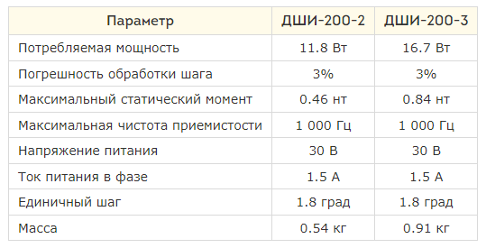 В станках часто применяют шаговые двигатели индукторного типа, изготовленные в СССР. Речь о моделях ДШИ-200-2 и ДШИ-200-3. Они обладают следующими характеристиками: